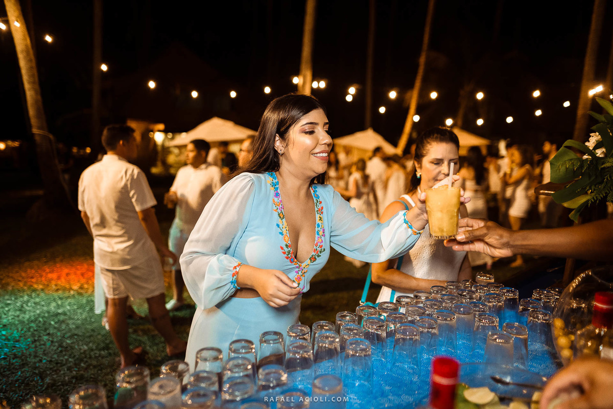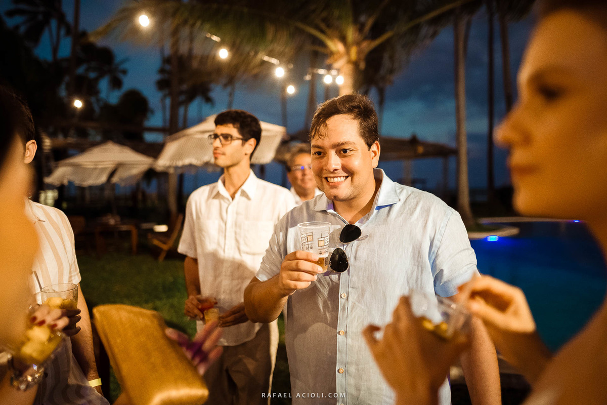 Izabel e Romero prepararam um luau em Carneiros para receber os familiares e amigos. Muitas pessoas vieram direto do interior de Pernambuco para comemorar a alegria do casal. O clima foi de descontração total, muita animação e sorriso fácil.