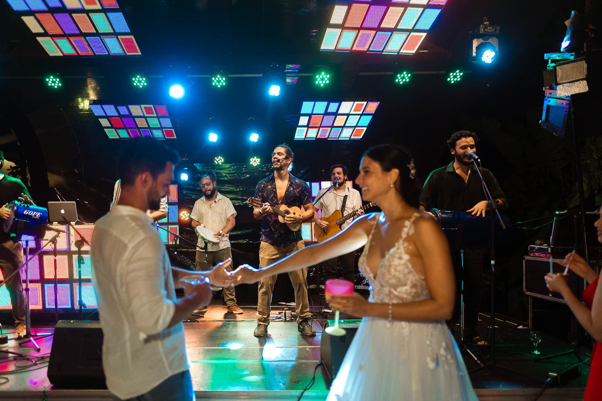 O som da festa ficou por conta do Bailinho Maravilha que abriu com muita animação e trouxa a trilha sonora da primeira dança do casal. Sambarrasta também marcou presença e não deixou ninguém parado.